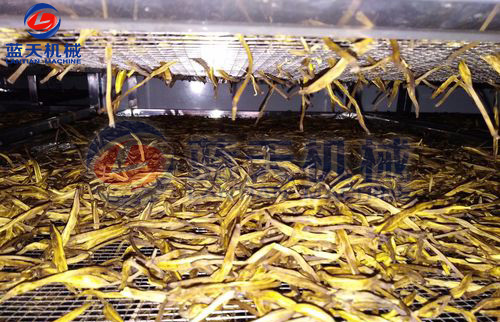 3、經(jīng)過2個(gè)小時(shí)的殺青冷卻后,黃花菜有點(diǎn)像煮熟后的那種感覺。這個(gè)時(shí)候溫度控制在45°C-50°C,運(yùn)行時(shí)間3個(gè)小時(shí)。濕度控制在70% 左右。
