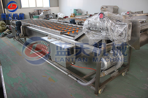將洗干凈的原料根據產品要求分別切成片、絲、條等形狀。預煮時,因原料不同而異,易煮透的放沸水中焯熟,不易煮透的放沸水(水溫一般在150℃以上)中略煮片刻,一般燙漂時間為2~4分鐘。葉菜類最好不燙漂處理。
