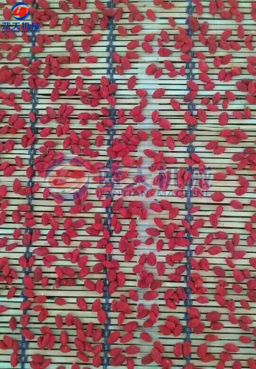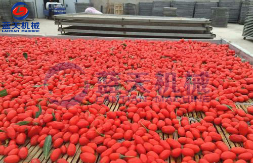 枸杞鮮果干燥的普遍現(xiàn)象是果實表面水分擴散大于內部擴散速率,果內含游離水外滲速率大于結構水外滲速率,這是枸杞鮮果內含糖分高導致脫水干燥困難的緣故。如果干燥室內溫度過高,鮮果表面水分散失過快,而果內水分的外滲又供不上來,則表皮會起泡,阻塞了排水氣孔,反而使果內水分排不出來,此時皮層已脫色、品質下降。所,鮮果先進行表面油脂冷浸處理,加上適宜的溫度和風速,在表皮脫水的同時通過氣孔透入果內的溫度升高,有利于果內的水分排出,從而加快了干燥速度,并能保證烘干質量。