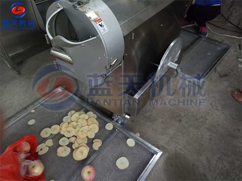 二、攤放在物料托盤上,蘋果片都裝好后,推入蘋果片烘干機內進行烘干